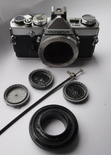 "Adaptierte OM1 mit "film-dosen-wechsel-objektiv""