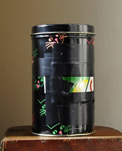 "Cámara construída con una lata de golosinas para gatos, a la que se le añadió un esténopo ralizado en una chapa de envase de gaseosa."
