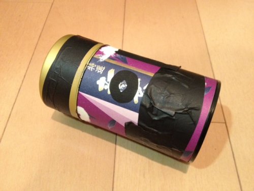 "Pinhole camera with a can of Japanese tea. Take the picture by setting the photographic paper."