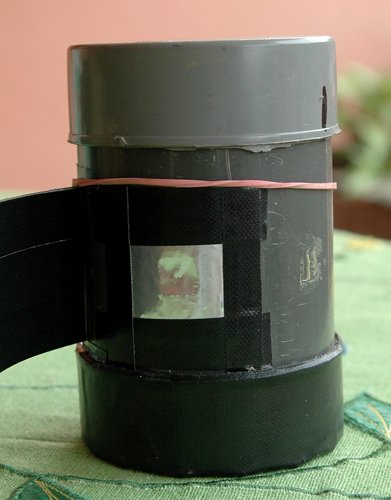 "kamera terbuat dar Paralon PVC, Kertas foto Ilford ukuran 3.5in X 5.5in waktu pemotretan 15 detik"