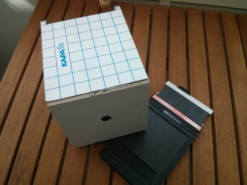 "Homebrew 4x5" pinhole camera. Made from cardboard. 160mm, 0,4 mm, ISO 100 Filmsheet"