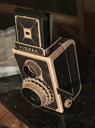 "Handmade cardboard camera from a kit. The Videre by the Pop-up Pinhole Company. Ilford HP5 120 film. There must have been some trouble with the film advancement, the lower half of the photo has some double exposures."