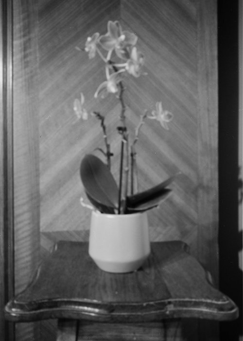 "It was another rainy day, so I stayed indoors to shoot. I chose an orchid plant in the house and set up the camera about 40cm from the plant. My lighting was available indoor lights."