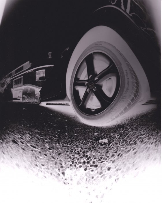 "This is taken 18 inches away from the car wheel. I was interested in the dynamics of pinhole and with close-up, you can 'monkey around' with "reality"!"