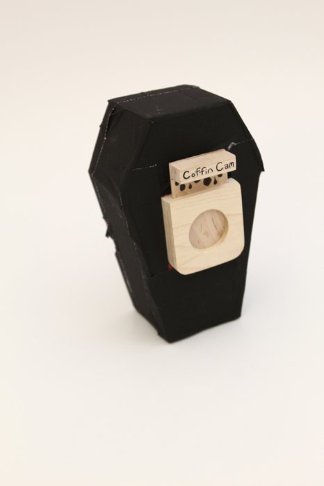"An abstract, coffin-shaped, triple-exposure pinhole photograph."