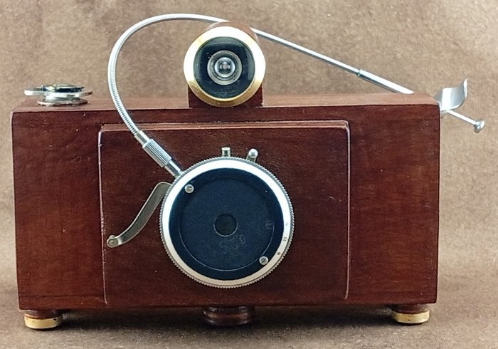 "A DIY pinhole camera, with shutter and soft shutter release. Noble wood structure. Foma 100 ISO film. Cafenol."