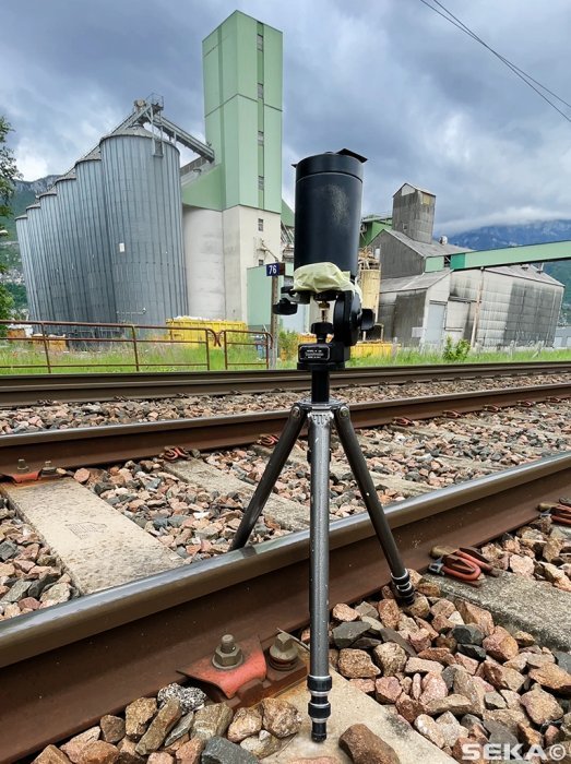 "On this Worldwide Pinhole Photography Day, I was traveling and wanted to pay tribute to displaced people for peace, economic, political, or climate-related reasons. Major train line near agricultural silos, four minutes pose."